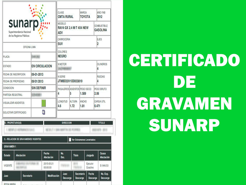 Es un certificado expedido por la Superintendencia Nacional de los Registros Públicos de la SUNARP de Perú, este documento se asigna por algún tipo de deudas o multas que tengan algunos bienes muebles e inmuebles.