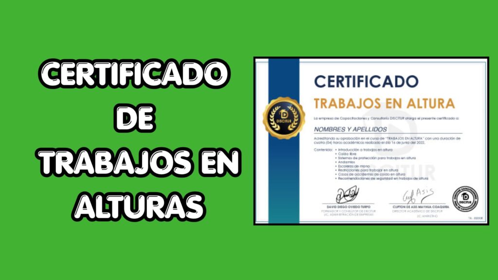 El Certificado de trabajos en Altura es un documento otorgado a todos los trabajadores que realicen trabajos en altura sean capacitados y entrenados en: reconocimiento de riesgos de caída y uso adecuado de los sistemas y equipos de detención de caídas.